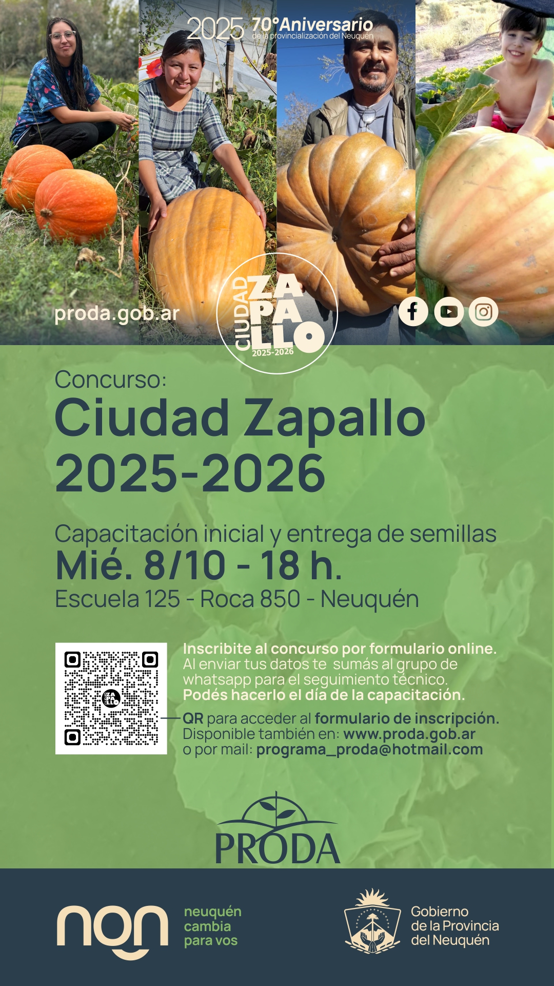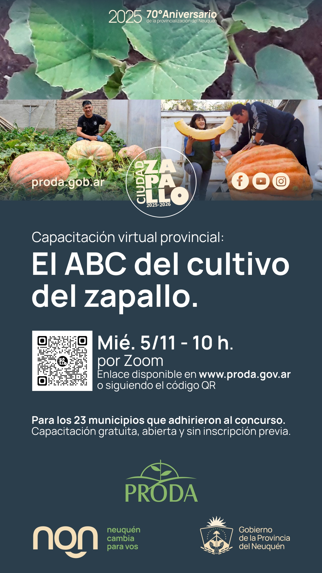 Acceda aquí al enlace para sumarse a la capacitación virtual provincial sobre el cultivo del zapallo. Orientada especialmente para las y los agricultores urbanos de los 23 municipios que adhirieron al concurso CIUDAD ZAPALLO.